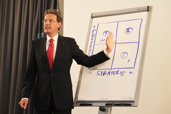 In Diskussionsrunden und persönlichen Gesprächen gingen die Referenten auf jede Teilnehmerfrage ein und scheuten auch nicht, über Fehlentscheidungen und deren mitunter langwierige Korrektur zu sprechen. „Markenführung ist Chefsache und keine Aufgabe der Marketingabteilung. Zu allen Entscheidungen der Person des Markenführers gehört jedoch auch, die ausführenden Personen zu gewinnen und auf ihrem Weg zu leiten“, resümierte Gastgeber Prof. Dr. Guido Quelle, mit seiner Mandat Managementberatung.