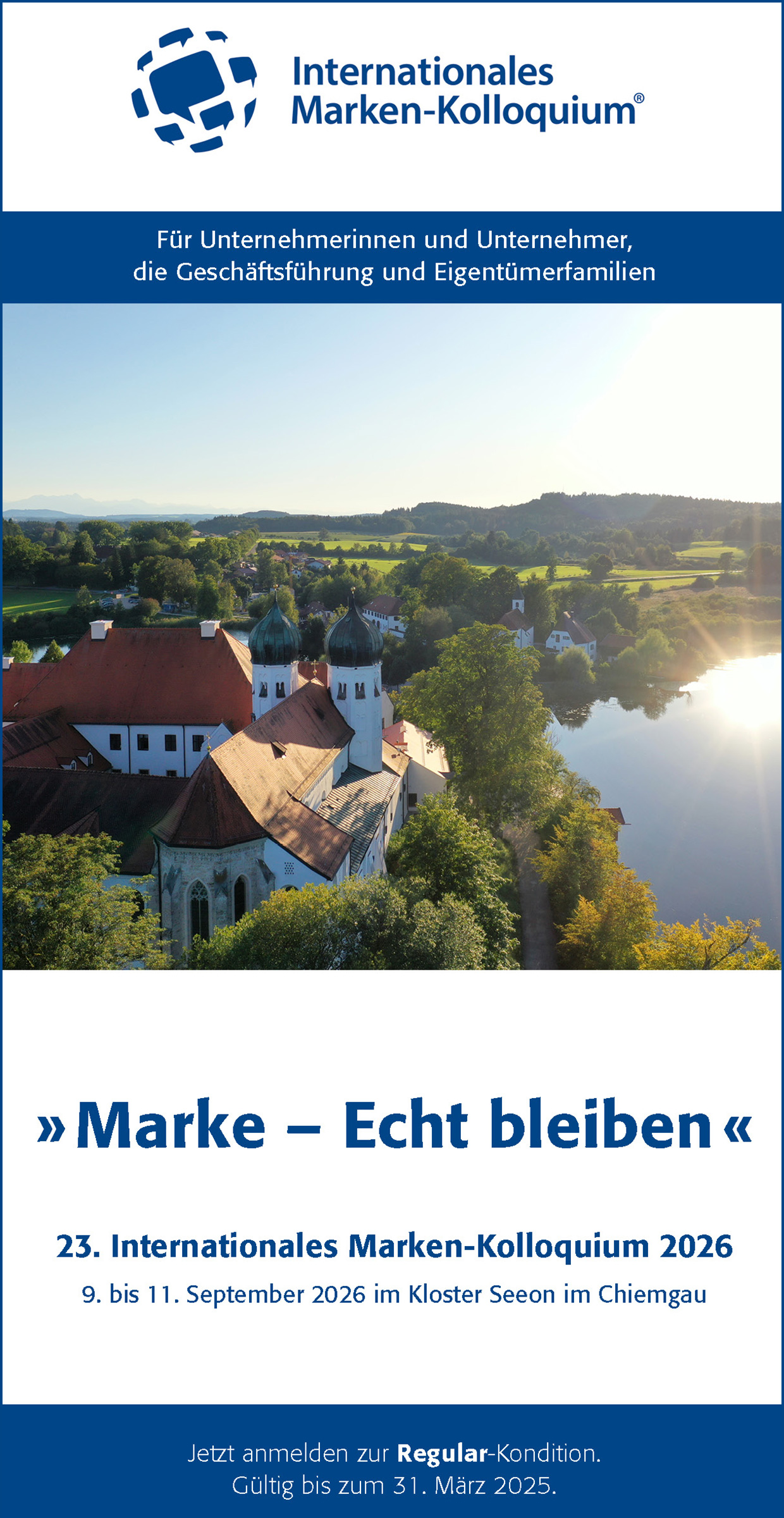 Sobald Ihre Anmeldung bei uns eintrifft, erhalten Sie eine Anmeldebestätigung per E-Mail. Die Zahlung erfolgt auf Rechnung. Möchten Sie von Ihrer verbindlichen Anmeldung zurücktreten, teilen Sie uns dies bitte schriftlich mit. 50 % der Teilnahmegebühr werden bis zum 30.06.2026 erstattet. Umbuchungen auf eine Ersatzperson sind kostenfrei möglich. Alternativ haben Sie die Möglichkeit, Ihr gezahltes Guthaben für die Teilnahme am 24. Internationalen Marken-Kolloquium 2027 stehenzulassen. Wir reservieren gerne ein Zimmer im Kloster Seeon für Sie, die Hotelrechnung begleichen Sie bitte vor Ort.